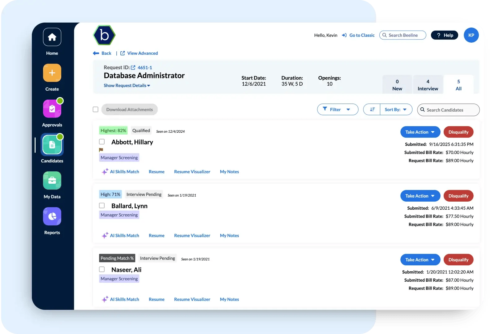 Achieve measurable efficiency, compliance, and cost control while gaining the agility to scale and compete in today’s fast-changing talent landscape. With Beeline Contingent Staffing, you’ll transform contingent workforce management from a reactive process into a proactive, strategic advantage.
